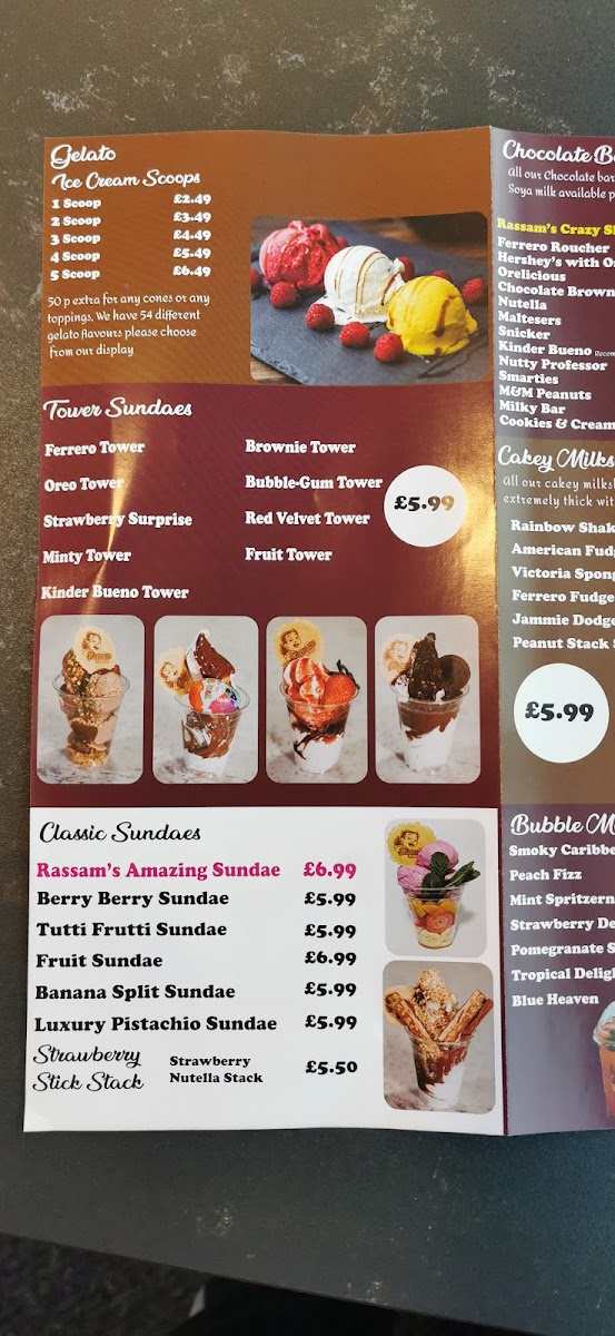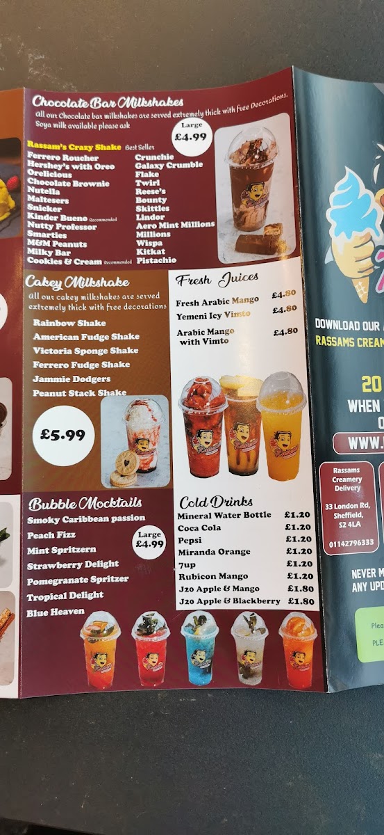 Introducing Rassams Creamery in Wakefield, a dessert paradise that captivates both the eyes and the palate. Nestled in Unit 7 Burgage Square, this vibrant eatery is a haven for dessert lovers, offering an extensive menu filled with indulgent chocolate bar milkshakes and delectable pancake stacks. Each shake, from the Ferrero Rocher to the Nutty Professor, bursts with flavor, while pancake lovers can enjoy sumptuous options like Nutella Strawberry Stacks or Oreo Pancake Stacks.